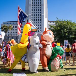 We created this image at the "No Kings" protest in Downtown Los Angeles on October 18th, 2025. It is a modern adaptation of the raising of the flag at Iwo Jima in 1945. Antifascism may look different today, but the message is still the same.